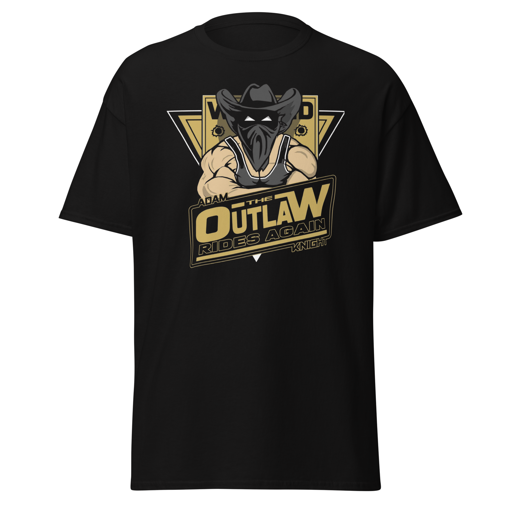 The legend returns. Rep a true titan of the squared circle with the official "Outlaw" Adam Knight "Rides Again" graphic tee. This design features the gold-and-black outlaw emblem, symbolizing over 30 years of dominance and the "Old School Wrecking Crew" mentality that has made Knight a respected veteran from Winnipeg to Japan.